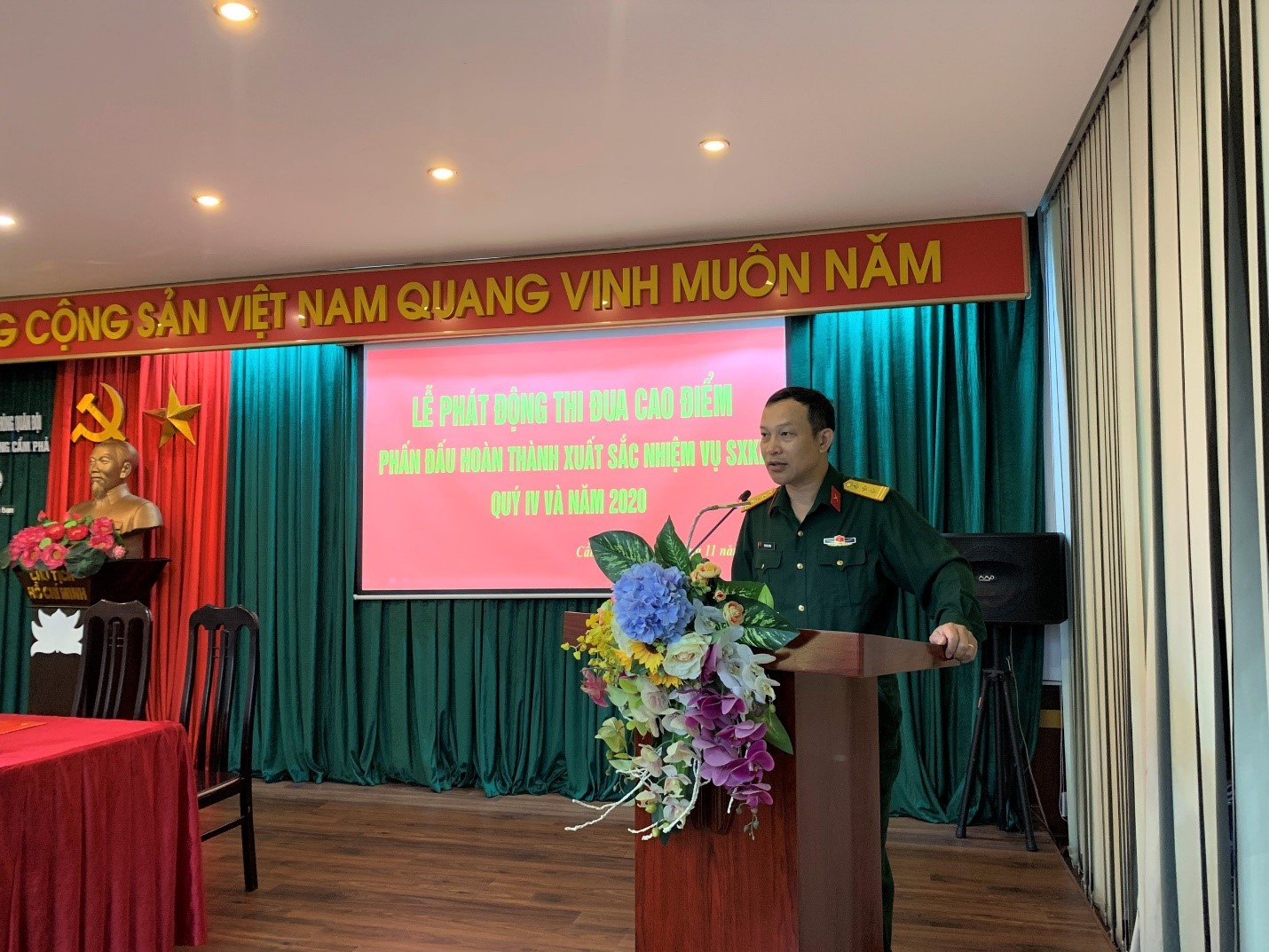Tại buổi lễ phát động, thay mặt Ban Tổng Giám đốc Công ty, đồng chí Thượng tá Tăng Bá Tuyên đã báo cáo nội dung, chỉ tiêu thi đua quý IV/2020. Trong đó có các nội dung trọng tâm như: Đảm bảo chuẩn bị chu đáo và hoàn thành sửa chữa lớn, đảm bảo an toàn, chất lượng, hiệu quả, rút ngắn thời gian tiến độ; BCH các TCQC xung kích vào thực hiện nhiệm vụ chính trị trung tâm là hoạt động SXKD, tham gia hỗ trợ trong công tác sửa chữa lớn; Tổ chức tốt các hoạt động kỷ niệm nhân dịp 31 năm ngày Hội Quốc phòng toàn dân (22/12/1989 – 22/12/2020) và 76 năm ngày thành lập Quân đội Nhân dân Việt Nam (22/12/1944 – 22/12/2020); Đảm bảo sản xuất sản phẩm Clinker, Xi măng đạt Quy chuẩn kỹ thuật quốc gia QCVN 16-1:2017/BXD và đáp ứng yêu cầu chính đáng của khách hàng; Khắc phục kịp thời các lỗi, sự cố hư hỏng, đảm bảo các chỉ tiêu kỹ thuật KPI theo quy định và duy trì thường xuyên quá trình hoạt động của hệ thống thiết bị, đảm bảo an toàn, ổn định, chất lượng, đạt hiệu quả cao nhất; Tiêu thụ Xi măng sản lượng gần 250.000 tấn và 100.000 tấn Clinker; Lắp đặt, thay đổi toàn bộ hệ thống biển, bảng và sơn 13 xe bồn theo Logo nhận diện mới; Hoàn thành 100% các chỉ tiêu xuất hàng tại Nhà máy chính theo kế hoạch tiêu thụ; Chủ động áp dụng các giải pháp, tối ưu và tiết kiệm chi phí nguyên, nhiên, vật liệu trong SXKD,…