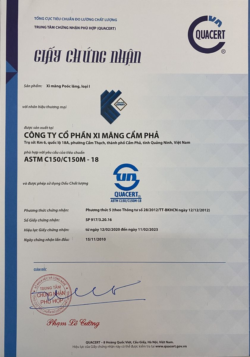 Giấy chứng nhận Xi măng Poóc lăng loại I