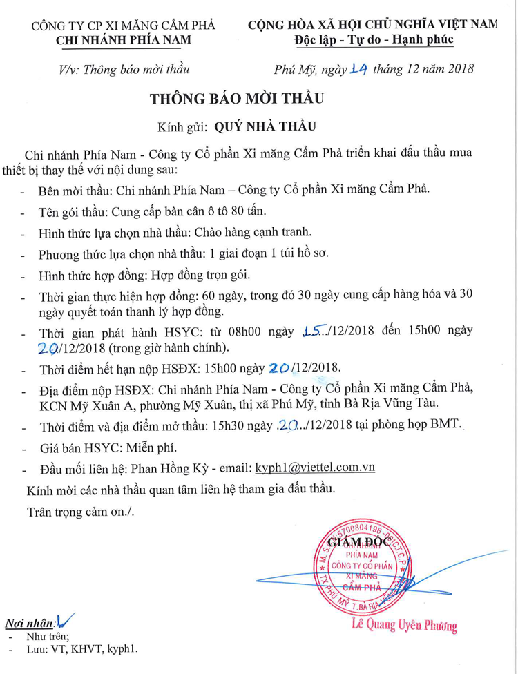 Thông báo mời tham gia đề xuất cung cấp bàn cân ô tô 80 tấn