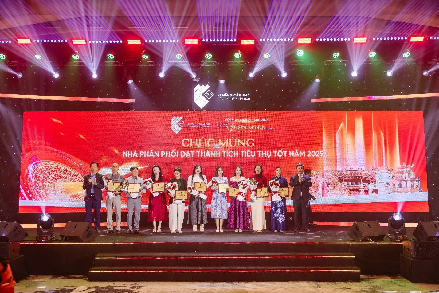 Hội nghị đã dành thời gian tổng kết tình hình sản xuất kinh doanh của Xi măng Cẩm Phả trong năm 2025, đồng thời tôn vinh các Nhà phân phối, Quý đối tác tiêu biểu. Cũng tại Hội nghị, Công ty đã trao tặng những phần quà ý nghĩa như lời tri ân sâu sắc trước những đóng góp thiết thực của Quý khách hàng, Quý đối tác, Nhà phân phối và Nhà đầu tư, cùng hướng tới một năm 2026 Đoàn kết – Phát triển – Vươn mình cùng Đất nước.