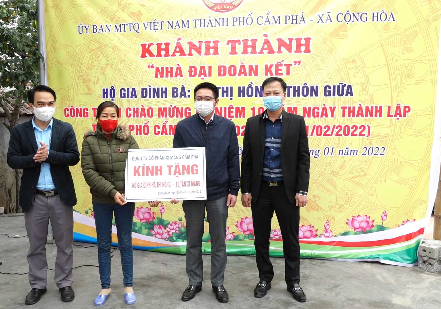 Sáng ngày 20/1/2022, tại xã Cộng Hòa, UBMTTQ thành phố tổ chức lễ khánh thành và bàn giao 02 nhà đại đoàn kết cho gia đình bà Hà Thị Hồng ở thôn Giữa và gia đình bà Lộc Thị Nởm ở thôn Đồng Cói. Đồng chí Nguyễn Thị Kim Phượng – Phó Bí thư Thường trực Thành ủy dự và chung vui với các gia đình. Công trình được gắn biển chào mừng kỷ niệm 10 năm thành lập thành phố Cẩm Phả (21/2/2012 – 21/2/2022).