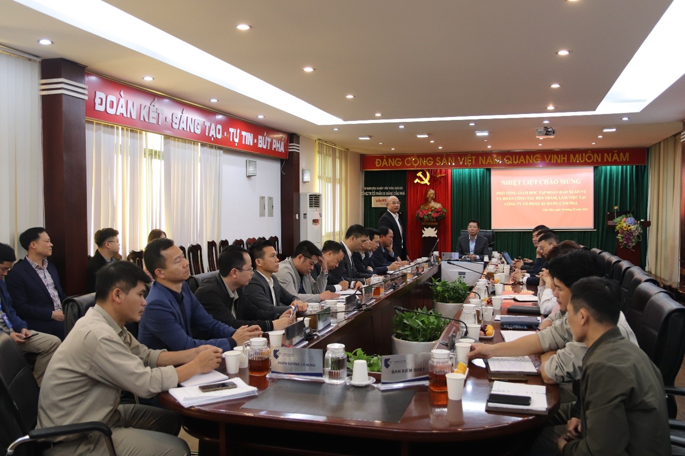 Sáng ngày 16/02/2024, trong bầu không khí tưng bừng, phấn khởi của những ngày làm việc đầu năm mới Giáp Thìn 2024. Công ty Cổ Phần Xi măng Cẩm Phả vô cùng vinh dự khi là một trong những đơn vị được tiếp đón đoàn công tác của Ban lãnh đạo Tập đoàn tới thăm và chúc Tết Công ty.