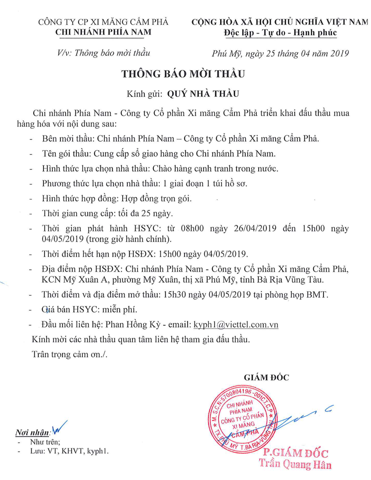 Thông báo mời tham gia đề xuất cung cấp sổ giao hàng cho Chi nhánh Phía Nam
