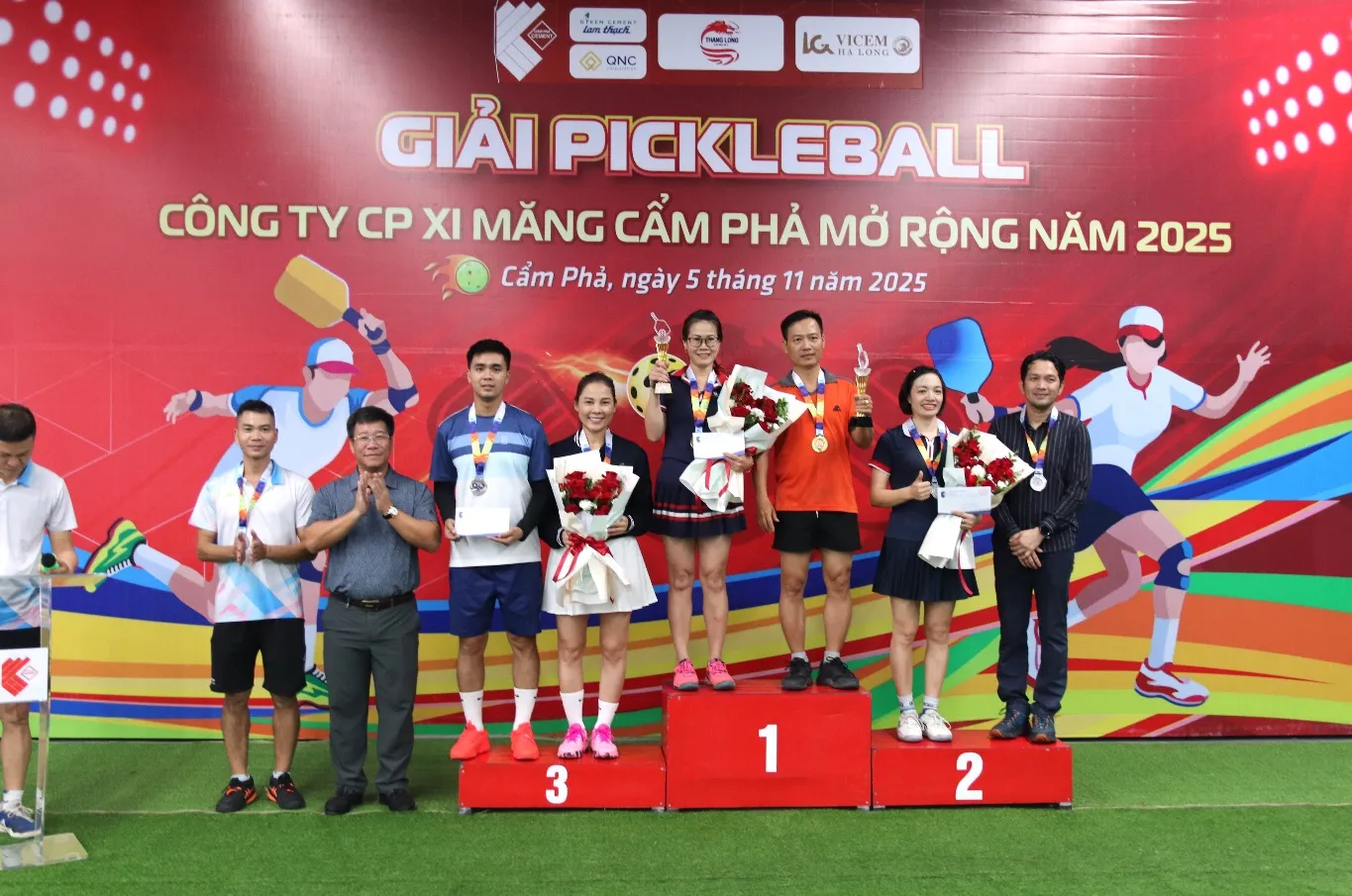 Kết thúc giải, Ban Tổ chức đã trao thưởng cho các nội dung Đôi nam và Đôi nam nữ, ghi nhận sự nỗ lực, tinh thần thi đấu fair-play và những màn trình diễn ấn tượng của các vận động viên. Giải Pickleball mở rộng năm 2025 đã khép lại thành công tốt đẹp, để lại nhiều cảm xúc, dấu ấn đẹp và tiếp tục khẳng định tinh thần thể thao, đoàn kết, gắn bó của Công ty CP Xi măng Cẩm Phả.