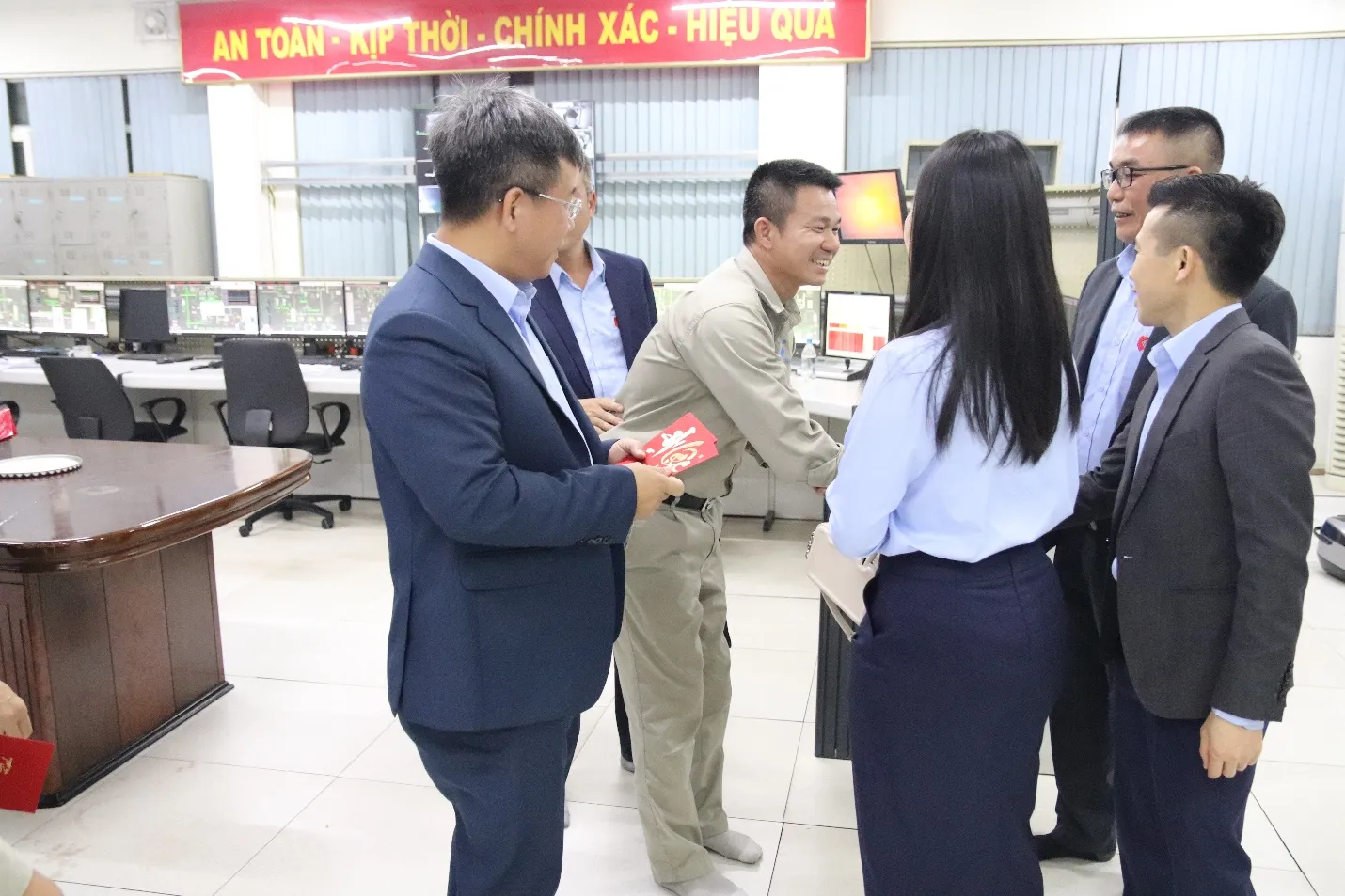 Giữa ánh đèn rực sáng của dây chuyền sản xuất và âm thanh nhịp nhàng của thiết bị vận hành, lãnh đạo Công ty đã trực tiếp đến từng vị trí làm việc, thăm hỏi, động viên và gửi lời chúc Tết tới CBCNV đang thực hiện nhiệm vụ trực Tết. Những lời chúc đầu xuân, những cái bắt tay ấm áp và sự quan tâm kịp thời đã tiếp thêm động lực cho người lao động, đặc biệt là những bộ phận phải làm việc xuyên đêm để bảo đảm sản xuất an toàn, thông suốt. Hình ảnh lãnh đạo sát cánh cùng người lao động trong thời khắc Giao thừa đã thể hiện tinh thần trách nhiệm, sự sẻ chia và quyết tâm giữ vững nhịp sản xuất ngay từ những giờ phút đầu tiên của năm mới.
